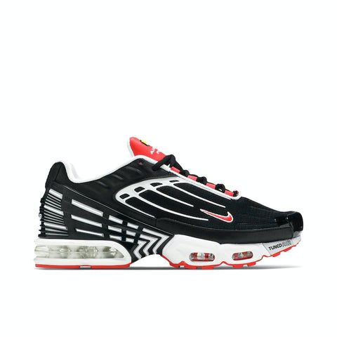 Το Nike Air Max Plus III διαθέτει την ίδια τεχνολογία Tuned Air με τα προηγούμενα μοντέλα της σειράς, αλλά και ανανεωμένη εμφάνιση με συγκολλητές πινελιές από πλαστικό υλικό στο επάνω μέρος και σχεδίαση αφιερωμένη στο εμβληματικό ντεγκραντέ χρωματικό εφέ του αρχικού μοντέλου.